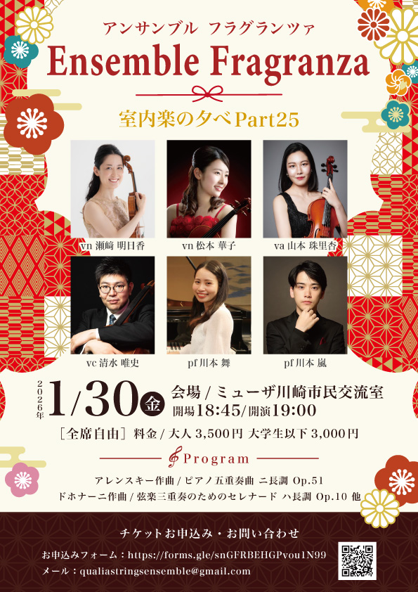 | お問い合わせ先 | 応募フォーム:こちら mail:qualiastringsensemble@gmail.com |